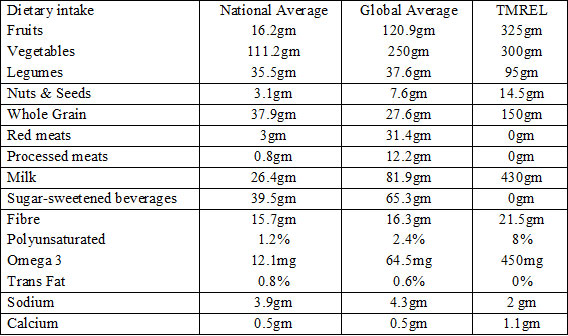Table 2: Dietary intakes of key foods and nutrients in adults aged 25 years and over in India, 2020