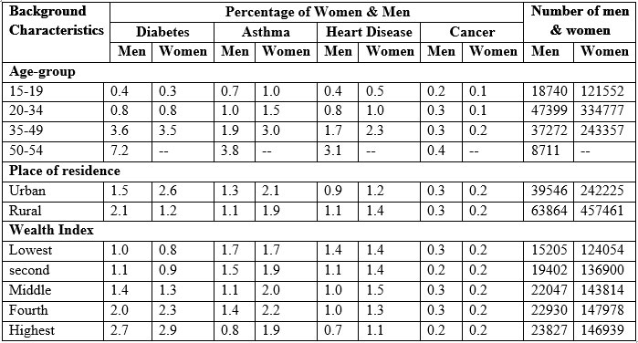 Table 3: Health Problems (Self Reported) in India, NFHS- 2015–2016